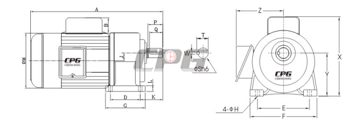 臥式附單相半密鐵殼(刹車)馬達減速機