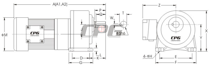 臥式高速比附三相縮框鋁-鐵殼(刹車)馬達減速機