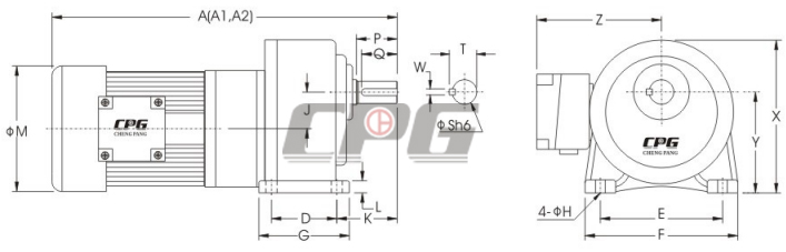 臥式高速比附三相鋁-鐵殼(刹車)馬達減速機
